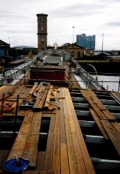While the rigging gang was making up all the new wire, the shipwrights and ship