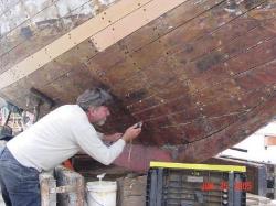 | Reefing seams Yours truly reefing out planking seams |