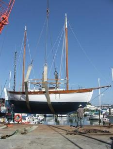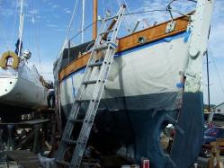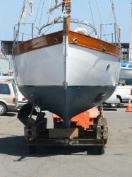 | Underway to the launching crane Classic Tahiti ketch underwater shape |