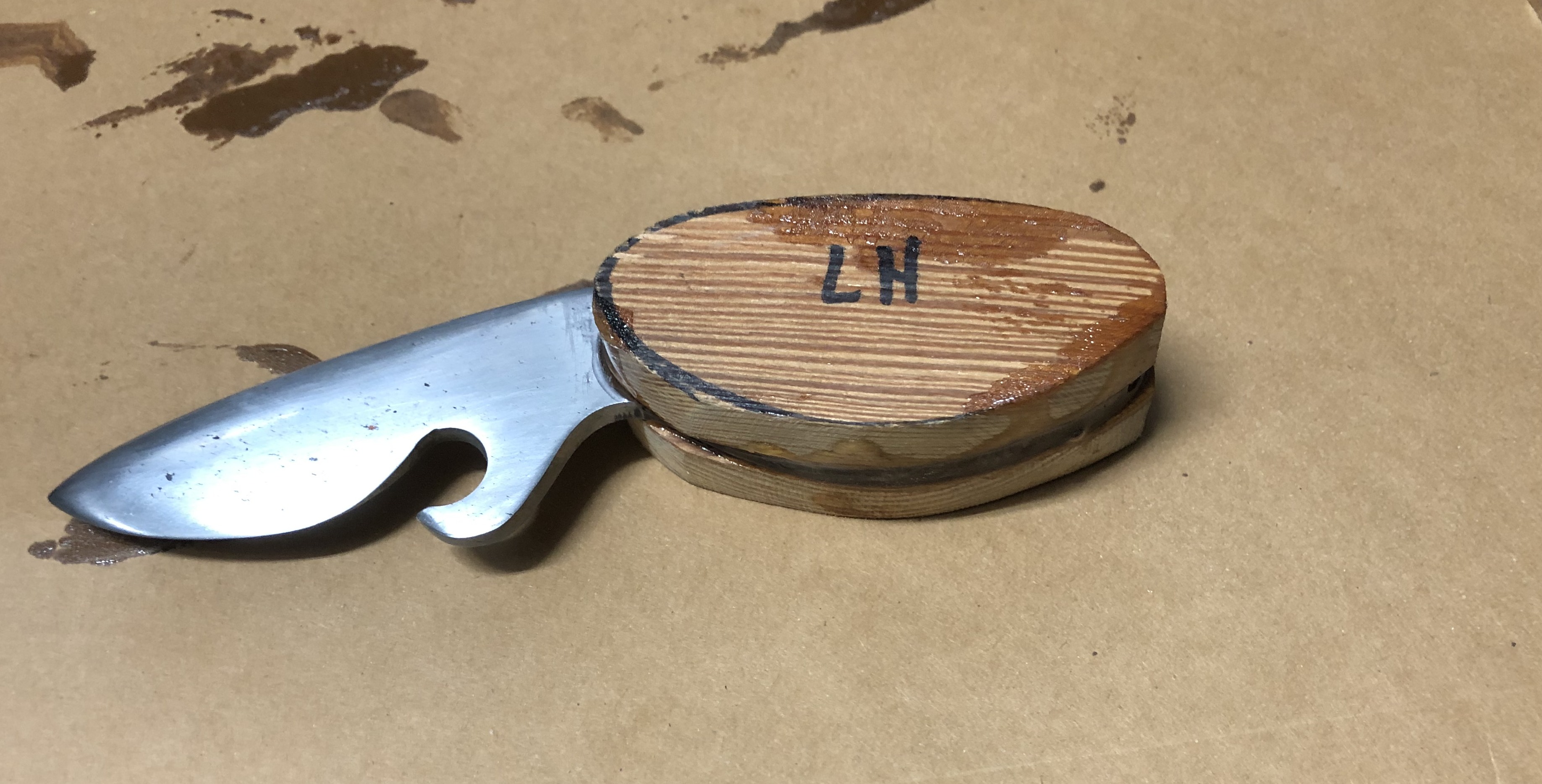 made an oyster shucking and bottle opener knife for the 2015 annual Plankowners'