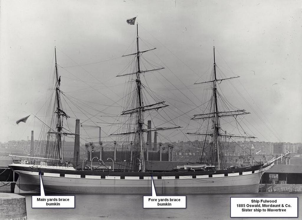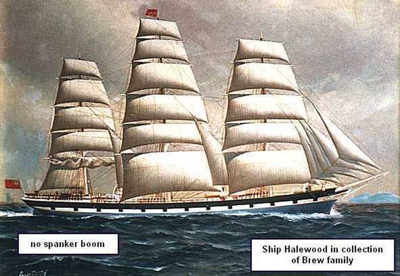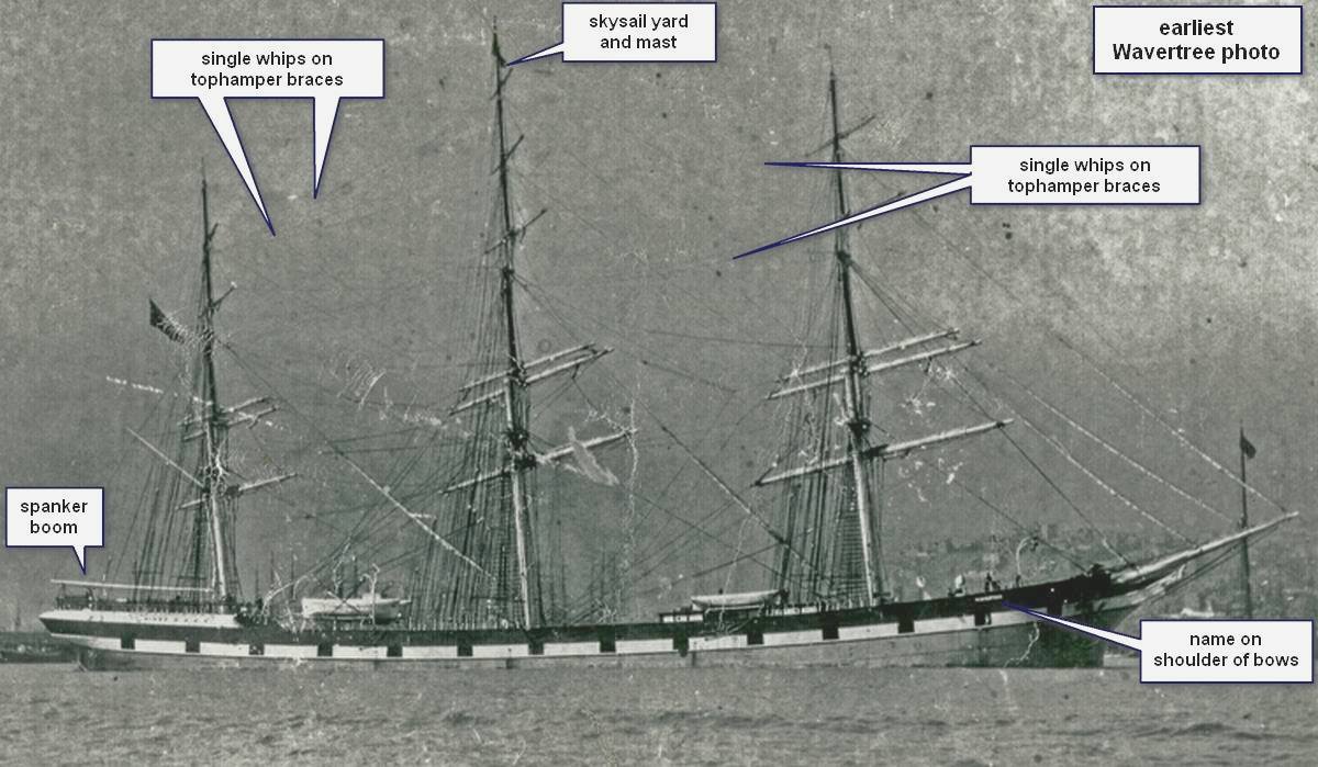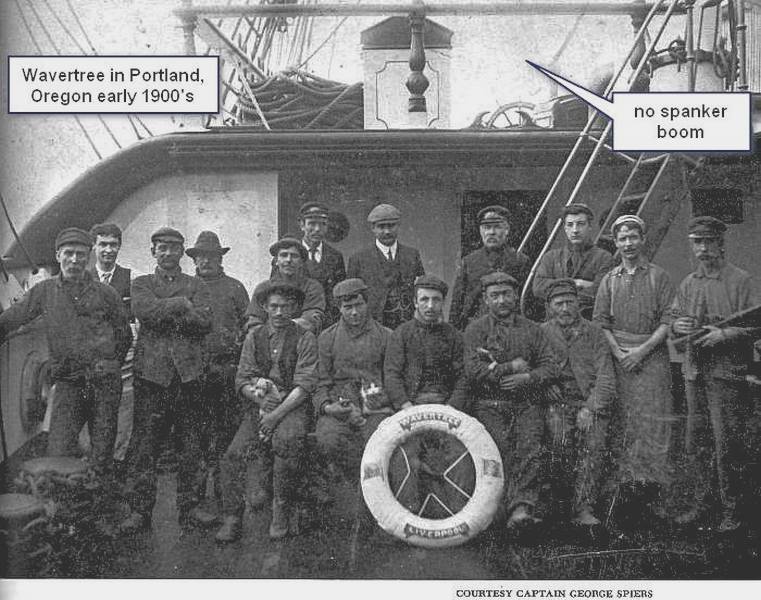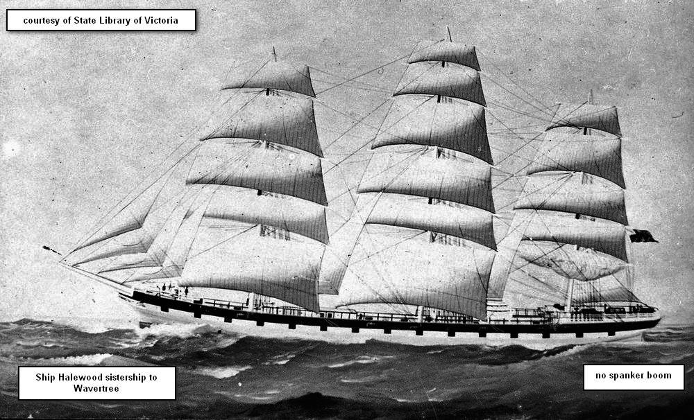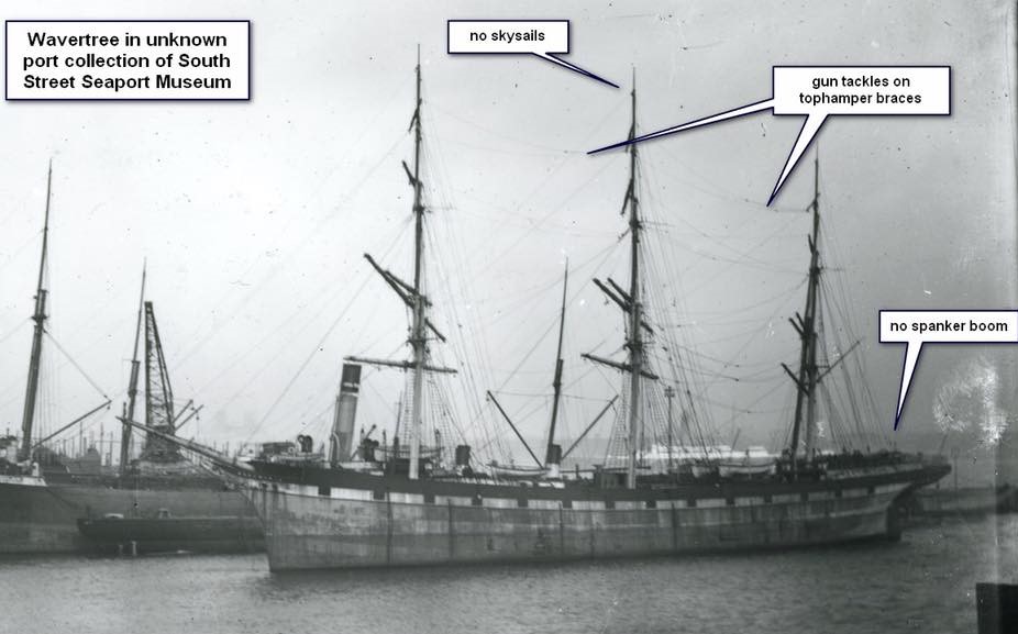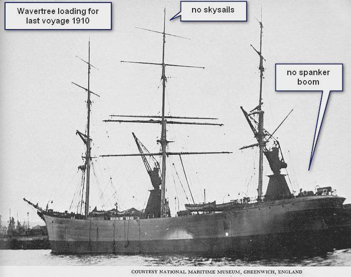 negative showing no skysails and spanker boom and only one very poor quality image of Wavertree with skysails and spanker boom, it was decided to center