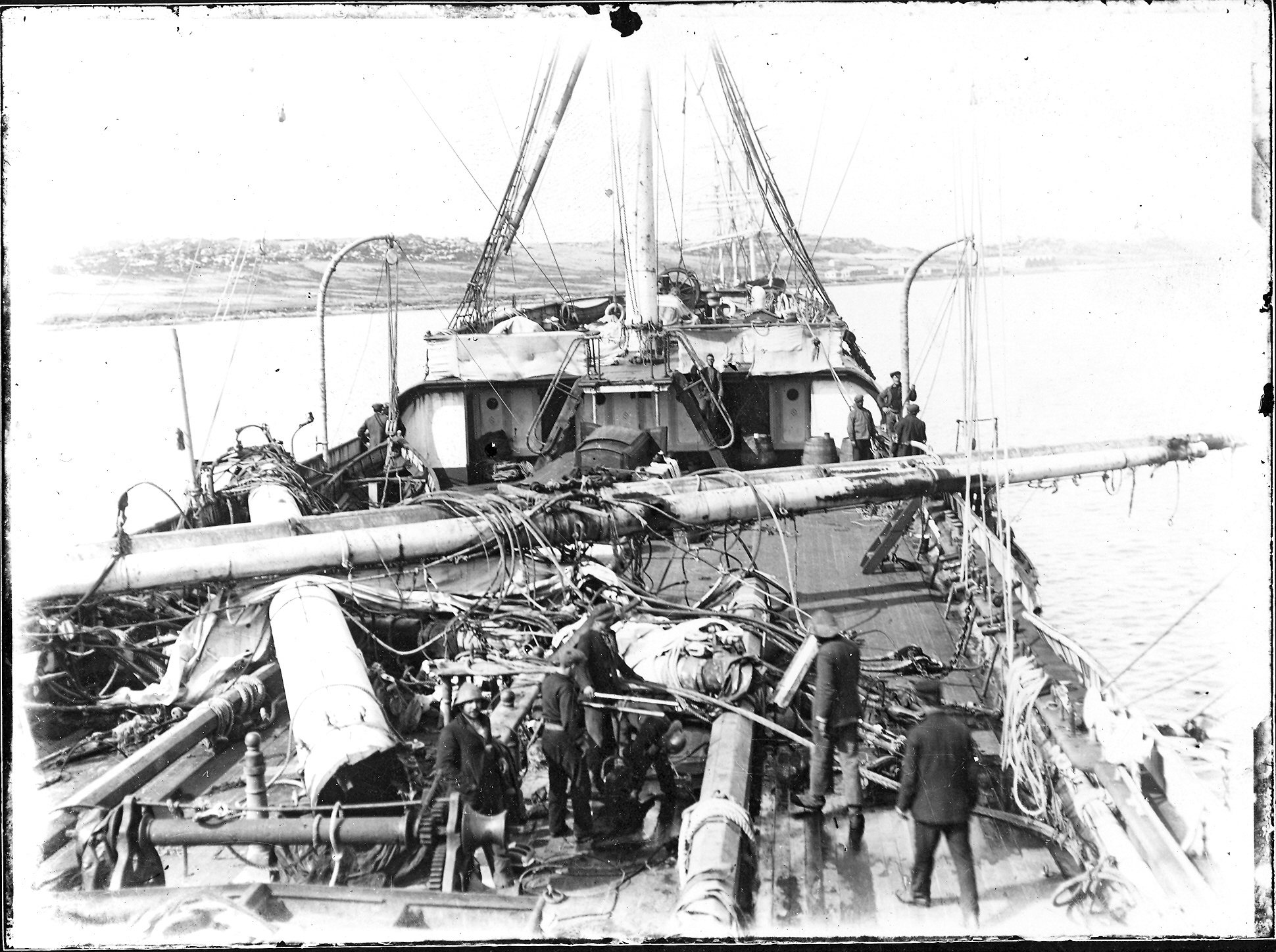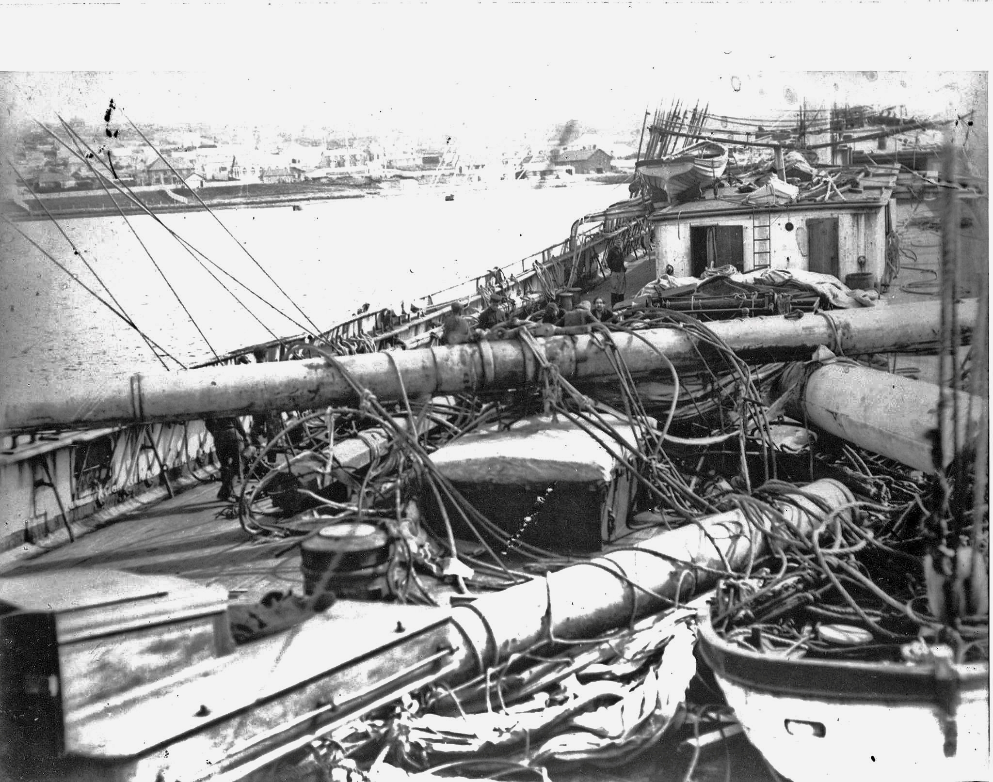 of her decks after being dismasted rounding Cape Horn in 1911.
