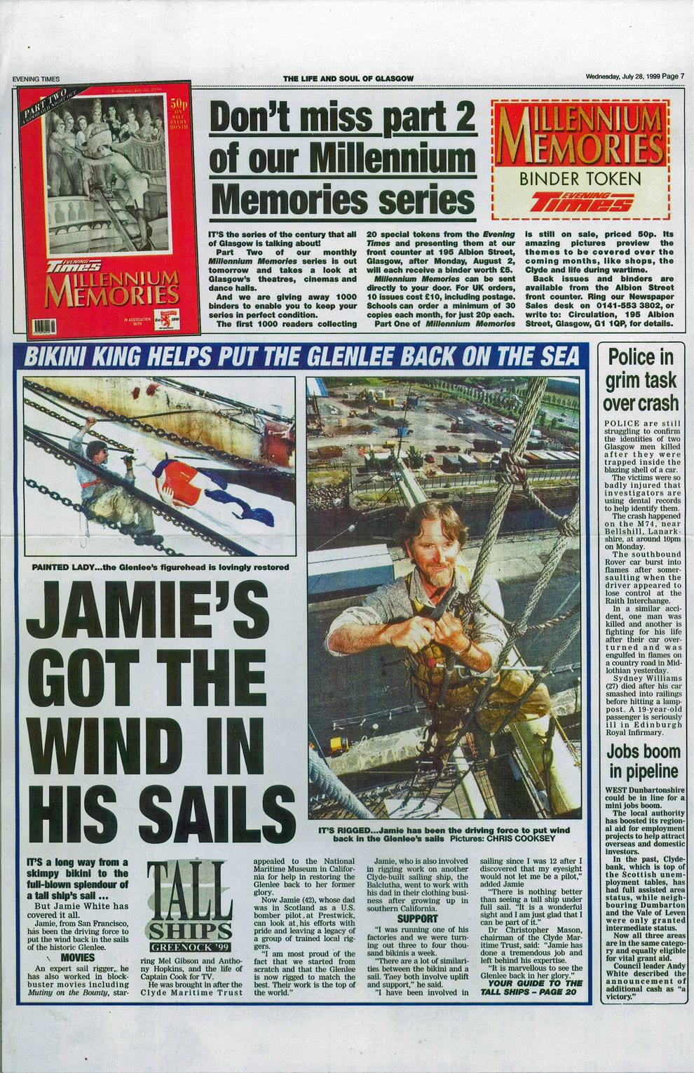 - 1999 July Towed downriver to Greenock to participate in the Cutty Sark Tallship event