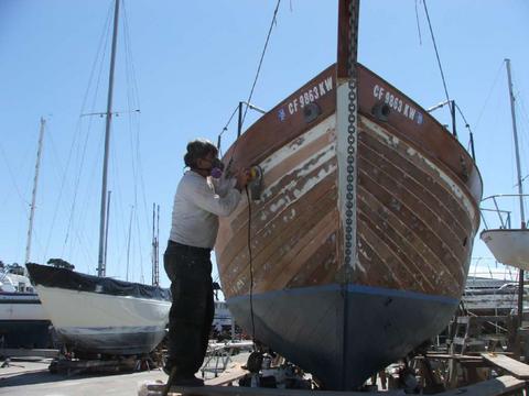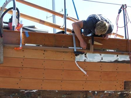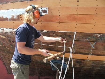| Reefing seams Yours truly reefing out planking seams |
