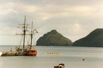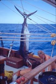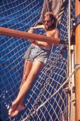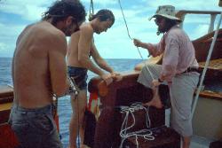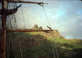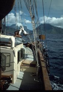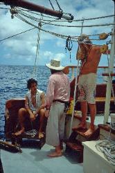 | Summer 1990 - At anchor Moore, French Polynesia first leg of maiden voyage. |